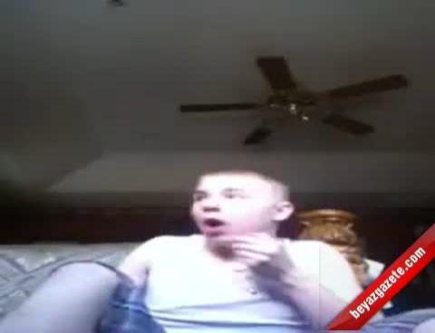 Delikanlı tüfeği ve silahını gösterip konuşurken silah aniden patlıyor. O korku dolu anları da saniye saniye kamera tarafından kaydediliyor.