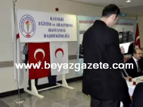 Kayseri Eğitim ve Araştırma Hastanesi’ndeki acil servis bölümünün açılışı sırasından yaşanan bayrak tutma olayı ilginç görüntülerin oluşmasına neden oldu.