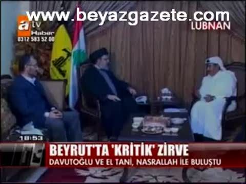 Lübnan'daki hükümet krizini çözmek için Beyrut'a giden Dışişleri Bakanı Ahmet Davutoğlu ve Katar Dışişleri Bakanı El Tani Hizbullah lideri Nasrallah ile buluştu. iki bakan Hizbullah'tan krizin aşılmasına yardımcı olmalarını istedi.