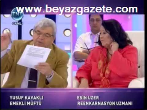 Emekli Müftü Yusuf Kavaklı ile Reenkarnasyon Uzmanı Esin Uzer arasında canlı yayında hararetli tartışmalar yaşandı. İslam dininin reenkarnasyonu reddettiğini belirten Kavaklı'ya karşı çıkan Uzer, söylemleri ve hareketleriyle emekli müftüyü adeta delirtti.