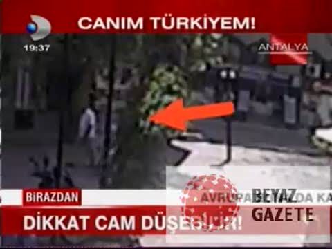 Antalya Kazım Özalp Caddesi'nde yaşanan olay akıllara durgunluk verdi. Kazım Özalp Caddesi üzerinde yürüyen Nebahat Kaleli isimli vatandaşın başına gelen olay bu kadarı da olmaz dedirtti.Araç trafiğine kapalı yolda adım adım ilerleyen Kaleli'nin başına bir iş hanının 7. katından pencere düştü.Kafasına düşen pencere ile sarsılan kadın ne olduğunu anlamadı can havliyle kaçmaya başlayan kadına çevredeki esnaf yardım etti.