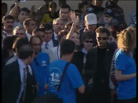 Hatay'ın Altınözü ilçesi Oscar ödüllü film yıldızı Angelina Jolie'yi ağırladı. Türkiye'ye sığınan Suriyelilerin yaşadığı kampı ziyaret eden Jolie, Suriyelilere Arapça "Marhaba" diye seslendi.