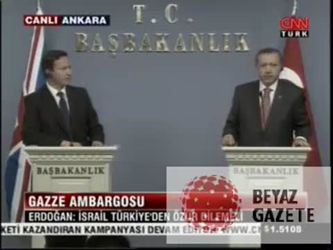 Başbakan seçildikten sonra ikinci yurtdışı ziyaretini Türkiye'ye gerçekleştiren İngiltere Başbakanı David Cameron, Recep Tayyip Erdoğan ile birlikte basın toplantısı düzenledi. Toplantı sırasında İngiliz bir gazeteci önce David Cameron’a İngilizce olarak İsrail-Türkiye ilişkileriyle ilgili bir soru yöneltti ve hemen ardından Başbakan Erdoğan’a döndü, Türkçe olarak “Tony Blair’le aranız çok iyiydi, yine bir Türkiye’yi seven Başbakan Ankara’ya geldi. Size David Cameron, Blair’i hatırlatıyor mu, daha iyi arkadaş olacak mısınız?” diye sordu.