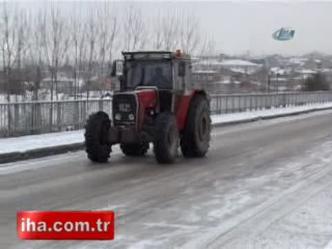 Edirne'de sabah saatlerinde yoğun kar yağışı etkili oldu. Kar nedeniyle kontrolden çıkarak kayan bir otomobil, yürekleri ağızlara getirdi.