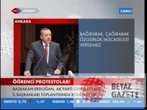 Başbakan Erdoğan, partisinin genişletilmiş il başkanları toplantısında muhalefeti ve medyayı eleştirdi. Sebebi ise öğrenci olaylarındaki yaklaşımdı. Muhalefetin ve medyanın illegal örgütlerle ele ele verdiğini söyleyen Başbakan, "Millet bu tutumu affetmeyecek" dedi. Erdoğan, il başkanları toplantısından CHP'li Süheyl Batum'a da bir Arap atasözü ile cevap verdi.
