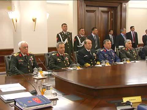 Yaklaşık 5 saat süren MGK toplantısı sona erdi. Cumhurbaşkanı Abdullah Gül Başkanlığında toplanan Milli Güvenlik Kurulu (MGK) toplantısı sona erdi.Çankaya Köşkü'nde gerçekleşen toplantı saat 13.40'da başladı. Toplantıda, iç ve dış gelişmelerin ele alınması bekleniyor. MGK toplantısında, Ağustos ayındaki Yüksek Askeri Şura (YAŞ) toplantısının ardından belirlenen TSK'nın yeni komuta kademesi ile MGK'nın sivil kanadı ilk kez biraraya geldi.