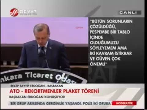 Başbakan Erdoğan, Ankara Ticaret Odası'nda düzenlenen vergi rekortmenleri ödül töreninde bir konuşma yaptı. Başbakan Erdoğan, Türkiye genelinde AK Parti seçim bürolarına yapılan saldırıları eleştirdi. CHP'yi de Diyarbakır da kapenk kapatmaya destek vermekle suçladı.