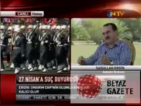 Adalet Bakanı Sadullah Ergin, NTV'ye konuk olarak canlı yayında Türkiye gündemine ilişkin soruları yanıtladı. Referandum süreci ile ilgili konuşan Ergin, 1960 darbesinde siyasi partilerin aldığı pozisyonlara geçmişe dönerek bakmak gerektiğini belirterek "Samimi olmak gerekiyor" dedi."Tribünlere oynamak yerine içimizden geldiği gibi davranmakgerekiyor" diyerek CHP'yi eleştiren Ergin, "Umuyorum ki CHP'nin bu adımı samim olsun" ifadelerini kullandı.Ardından CHP'de Kılıçdaroğlu'nun söylediği sözlerin parti kurumları tarafından başkalaştırıldığını öne süren Ergin, "Sayın Kılıçdaroğlu'nu ya söylediğin vazgeçiriyorlar. Ya da içini boşaltıp başkalaştırıyorlar" diye konuştu.