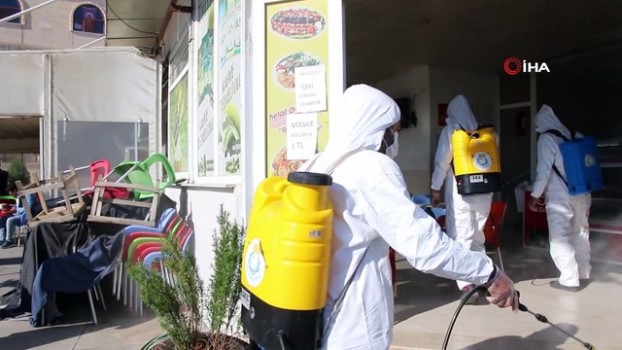 - Cumhurbaşkanı Recep Tayyip Erdoğan'ın yeni tedbirleri açıklamasının ardından harekete geçen ekipler, Şanlıurfa'da hastanelerin ortak kullanım alanları korona virüse karşı dezenfekte edildi. Şanlıurfa'nın merkez Haliliye İlçe Belediyesi, Cumhurbaşkanı Recep Tayyip Erdoğan'ın yeni tedbirleri açıklamasının ardından düzenli olarak yaptığı dezenfekte çalışmalarına devam etti. Belediyeye bağlı Temizlik İşleri Müdürlüğü, Covid-19 salgının başladığı ilk günden itibaren ilçe genelinde dezenfekte edilmedik yer bırakmadı. Dezenfekte ekipleri, vatandaşların pandemi sürecinde yoğun olarak kullandığı hastanelerin de, program dahilinde dezenfekte işlemlerini gerçekleştiriyor. Ekipler, yürüttüğü çalışmalar kapsamında hastanelerin kantin, kafeterya, asansörleri ve bekleme salonlarını dezenfekte etti. Temizlik İşleri Müdürlüğünden yapılan açıklamada, alınan tedbirlere ek olarak insan nüfusunun yoğun olduğu banka, ATM, park ve otobüs duraklarında da dezenfekte işlemleri yapıldığı belirtilerek vatandaşın sağlığı için mesai gözetmeden çalışmaları yürütüldüğünü dile getirildi.