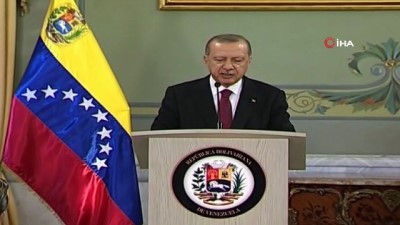 ( KARAKAS ) Cumhurbaşkanı Erdoğan: "Venezuela, Filistin Davası'nın en önemli destekçileri arasındadır"- Erdoğan:" Türkiye-Venezuela arasındaki beşeri ve ticari münasebetlerin daha da güçleneceğine inanıyorum"- "Caracas'ta bir cami inşaatı için yer talebinde bulundum. Sayın Maduro da bunu uygun buldu" KARAKAS