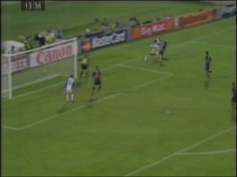 Fiorentina'lı futbolcu 30 metreden Barcelona'ya gol atıyor.