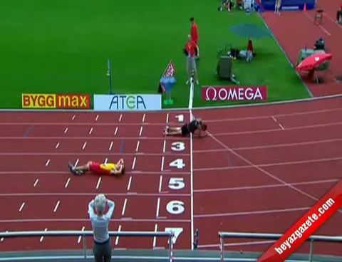 Koşuda birinci sırada iken bakın nasıl da sonuncu oluyor.