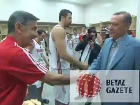 Başbakan Recep Tayyip Erdoğan, Türkiye A Milli Basketbol Takımı'nın Rusya ile oynadığı maçı izledi. Erdoğan, maçı kazanan '12 Dev Adam'ı soyunma odasına inerek kutladı. Başbakan Erdoğan, Türkiye'nin FIBA 2010 Dünya Basketbol Şampiyonası'nda oynadığı Rusya karşılaşmasını izlemek üzere Ankara Spor Salonu'na geldi. Başbakan Erdoğan'a eşi Emine ve kızı Sümeyye de eşlik etti. Grupta ilk maçında Fildişi Sahili'ni farklı bir biçimde yenen ve zorlu Rusya karşısına çıkan Türkiye'nin maçını izleyen Başbakan Erdoğan'ın zaman zaman heyecanlandığı görüldü. Başbakan Erdoğan, milli takımın basketlerini alkışlarken, maçın sonuna doğru taraftarların yaptığı 'Meksika Dalgalanması'na da katılarak ellerini havaya kaldırdı. Türkiye'nin Rusya'yı 65-56 yenmesinin ardından Başbakan Erdoğan, milli takımı ayakta alkışladı. Basketbol TakımıAnkara Spor SalonuFildişi Sahili12 Dev AdamRecep Tayyip Erdoğan