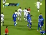 Yeşil sahada şiddet durmak bilmiyor. Rakip oyuncu tarafından itilip suya düşen futbolcu kendine hakim olamıyor.