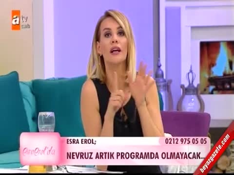 ATV'de yayınlanan Esra Erol'la programında ilginç anlar yaşandı. Esra Erol, talipleriyle çok konuşulan Nevruz'un artık programda olmayacağını açıkladı.