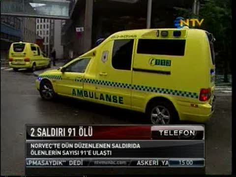 Norveç'te başkenti Oslo'da bulunan hükümet binalarına yapılan bombalı saldırı ile birkaç saat sonra iktidardaki İşçi Partisinin gençlik kampında düzenlenen saldırıda toplam 91 kişi hayatını kaybetti. Saldırgan Norveçli ve aşırı sağcı. Sadırıyla ilgili bir kişi daha gözaltına alındı.