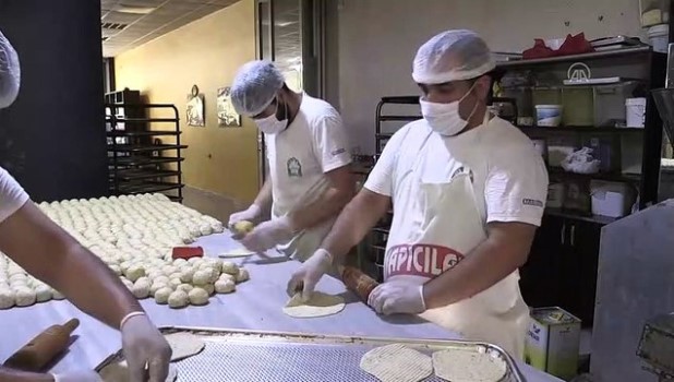 Adıyaman 'da bayramın vazgeçilmez lezzeti: "Bayram taplaması" - Taplama yapılışı - Yaşar Saygı ve müşteri Ferzey Saygı ile röportaj Adıyaman 'da bayramın vazgeçilmez lezzeti: "Bayram taplaması" - Kentin yöresel lezzetleri arasında yer alan taplama, Kurban Bayramı'nda yoğun talep görüyor - Fırın ustası Yaşar Saygı: - "İçinde katkı maddesi yok. Bir ay dahi kalsa yenebiliyor. Bayatlama olmuyor"ADIYAMAN (AA) - KEMAL KARAGÖZ - Adıyaman 'da fırın ustaları, kente özgü lezzetlerden "bayram taplaması" üretimini Kurban Bayramı öncesi artırdı.Uzun yıllardır evlerde un, kabartma tozu, susam, şeker, tuz, maya karışımından yapılan, kırsal bölgede tandırda, şehir merkezlerinde ise fırınlarda pişirilen "bayram taplaması", misafirlerin damaklarını tatlandırıyor.Kent merkezinde fırın ustaları, bayrama sayılı günler kala çevre illerin yanı sıra İstanbul, Ankara ve İzmir gibi kentlerden aldıkları siparişleri yetiştirmek için yoğun emek harcıyor.Kızgın ateşin önünde nar gibi kızaran taplamalar, bayramda misafirlerin isteğine göre hem kurabiye hem de tatlı olarak ikram ediliyor. - "Bir ay dahi kalsa yenebiliyor"İşletme sahibi fırın ustası Yaşar Saygı, AA muhabirine, bayrama özgü taplama siparişlerini yetiştirmek için çalışmalarını sürdürdüklerini belirtti. Mesai saatlerini uzattıklarını ve yoğun çalıştıklarını anlatan Saygı, şunları kaydetti:"Yaptığımız taplamaları, yurt dışına Almanya ve Fransa'ya da gönderiyoruz. Taplama, Adıyaman 'a özgüdür, şeker, yağ, anason ve safran karışımından oluşur. Yaklaşık yarım saat hamuru yoğurduktan sonra fırında pişiriyoruz. Yaklaşık 16 dakika pişiyor. İçinde katkı maddesi yok. Bir ay dahi kalsa yenebiliyor. Bayatlama olmuyor. Bayram öncesi taplamaya yoğun talep var. Kilosu 15 liradan satışa sunuluyor."Müşterilerden Ferzey Saygı ise özellikle bayramlarda bölge insanının taplamaya ilgi gösterdiğini dile getirdi.Misafirlere bayramda taplama ikram edildiğini belirten Saygı, "Bayramda misafirlerim gelecek, taplama alıp eve götürüyorum. Çok seviyoruz. Tadı çok güzel." diye konuştu. Müşterilerden Mustafa Yılmaz da taplamayı çok sevdiklerini kaydetti.