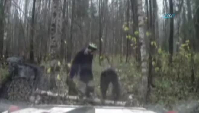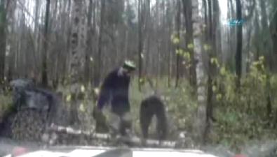 Rusya ' da ormanda kamp yeri arayan avcılardan biri, araçlarını çekmek istedikleri yerdeki ağacı sökmek isteyince olanlar oldu.