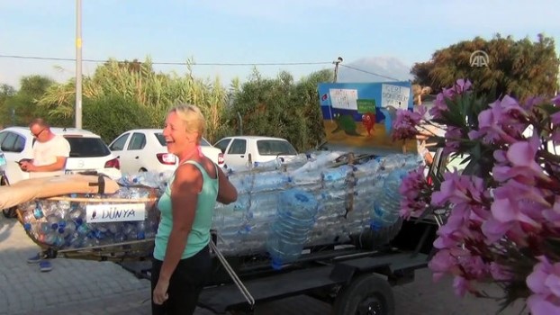 Topladıkları atık şişelerden farkındalık oluşturmak için tekne yaptıklarını anlatan Topçu, "İnsanların çevreyi nasıl kirlettiğini göstermek istedik. Çevreye en çok pet şişeler, alışveriş torbaları, içecek kutuları atılıyor. Bunları çocuklarımızla topluyorum. Onlara bu bilinci aşılamak istiyorum." dedi.