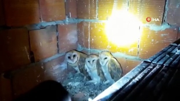 Bir aydır banyo boşluğunda kalan yavru Baykuşlar kurtarıldı