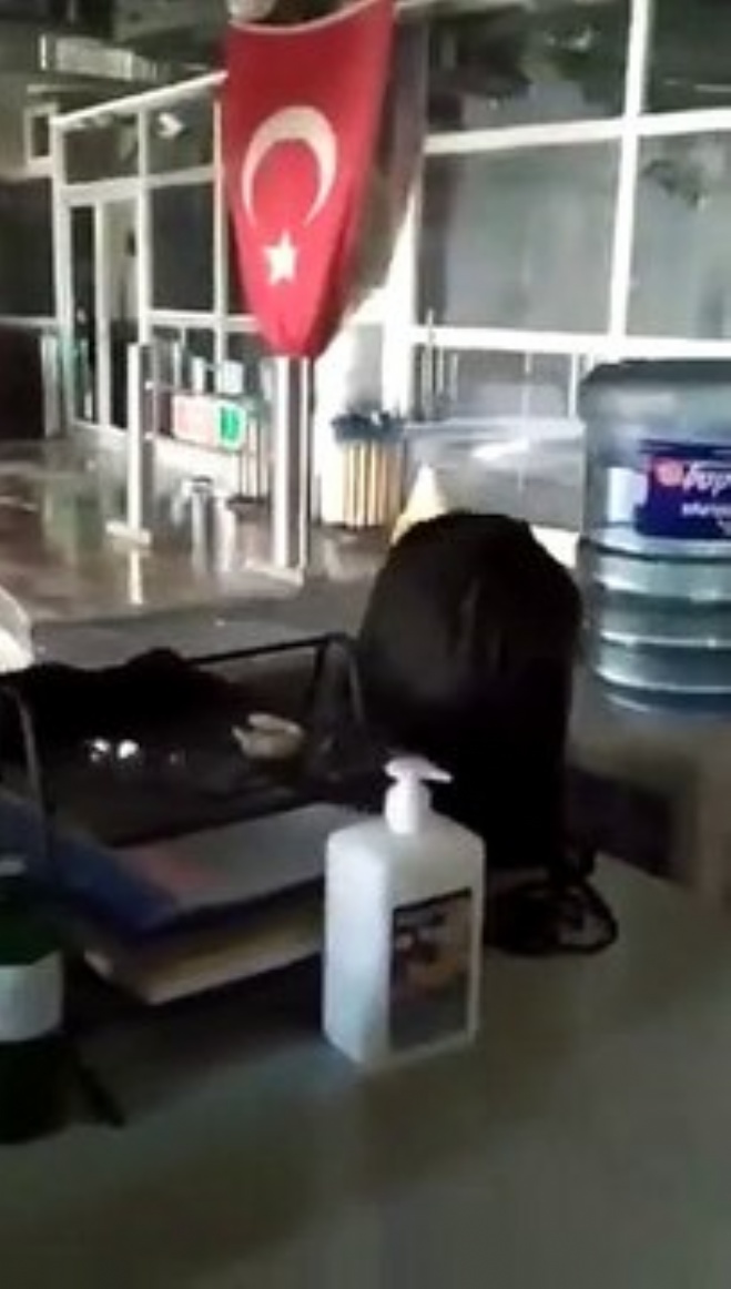 Ayının istasyona girdiğini fark eden yetkililer, ' Ayvayı yedik ' diyerek o anları kayda aldı.