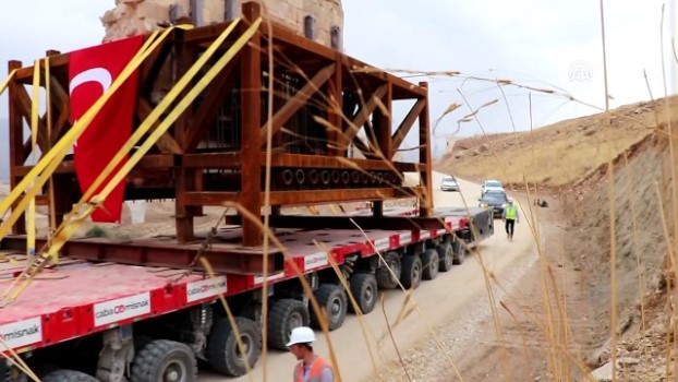 - Taşıma işleminin drone ile çekilen görüntüleri - Kale kapısının taşınması - Kale kapısının vinç ile yerine indirilmesi - DSİ 16. Bölge Müdürü Ali Naci Kösalı ile röportajHasankeyf Kalesi Orta Kapısı taşındı - 400 ton ağırlığındaki Hasankeyf Kalesi Orta Kapısı'nın, Kültürel Park Alanı'na taşınma süreci tamamlandı - Üç bölüm halinde geçici koruma alanına alınan yapı, 96 tekerlekli SPMT aracı ile yaklaşık 5 kilometre mesafedeki Hasankeyf Kültürel Park Alanı'nda bulunan Arkeopark'taki müzenin girişine indirilerek birleştirildiBATMAN (AA) - Devlet Su İşleri (DSİ) Genel Müdürlüğünce, Batman 'ın Hasankeyf ilçesinde 400 ton ağırlığındaki Hasankeyf Kalesi Orta Kapısı yeni yerine taşındı.Ilısu Barajı HES Projesi Kültürel Varlıkları Koruma Kurtarma Çalışmaları kapsamında Türkiye'de geçen yıl ilk defa uygulanan projeyle baraj gölü alanından çıkarılan 540 yıllık Zeynel Bey Türbesi, 1500 ton ağırlığındaki Artuklu Hamamı ve 850 ton ağırlığındaki İmam Abdullah Zaviyesi'nin yeni yerine bütüncül olarak nakledilmesi tamamlanırken, 611 yıllık Sultan Süleyman Camisi minaresinin, Hasankeyf Yeni Kültürel Park Alanı'na taşınması için başlatılan çalışma sürüyor.Çalışmalar kapsamında 16 Ekim Salı günü üç bölüm halinde 96 tekerlekli, kendinden tahrikli modüler sistem (SPMT) aracı ile yaklaşık 5 kilometre mesafedeki geçici koruma alanına taşınan ve 1423 yılında Süleyman Han tarafından yapılan yaklaşık 400 ton ağırlığındaki Hasankeyf Kalesi Orta Kapısı, Hasankeyf Müzesi girişindeki yeni yerine indirildi.Kale kapısı yaklaşık bir ay sürecek restorasyon işleminin ardından kullanıma hazır hale gelecek.Hasankeyf Kalesi'ndeki Şaap Vadisi girişine yapılacak Antik Liman'dan teknelerle Arkeopark'a gelecek ziyaretçiler, Hasankeyf Kalesi Orta Kapısı'ndan geçerek hem müzeyi hem de çarşıyı gezebilecek.Devlet Su İşleri (DSİ) 16. Bölge Müdürü Ali Naci Kösalı, yaptığı açıklamada, Hasankeyf Kalesi Orta Kapısı'nın taşınma işleminin başarıyla tamamlandığını söyledi.