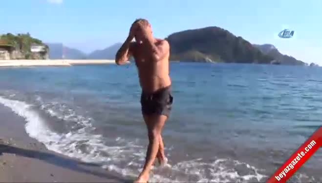 Türkiye ' nin bir çok ilinde bugünden itibaren başlayan kar yağışı hayatı olumsuz etkilerken, Muğla ' nın Marmaris ilçesinde güneşli havayı fırsat bilen yerli ve yabancı turistler denize girdi.