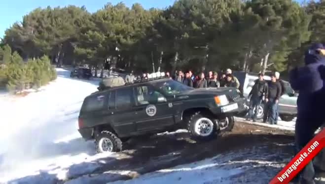 Başkonuş Yaylası'nın zirvesine çıkabilmek için kar, çamur, çukur ve dik rampaları tek tek geçen sürücülerin gezisi kazayla bitti. Etkinlik sonlarında, zirveye tırmanışını tamamlayan aracın kayarak taklalar atması yürekleri ağza getirdi.