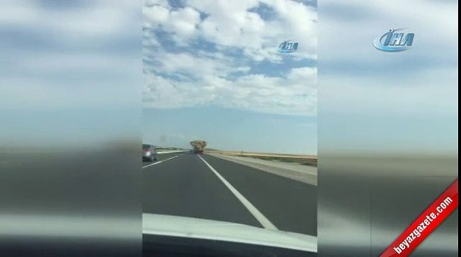 Aksaray ' da üzeri aşırı saman balyaları yüklü kamyonun trafikteki tehlikeli yolculuğu görenleri hayrete düşürdü.