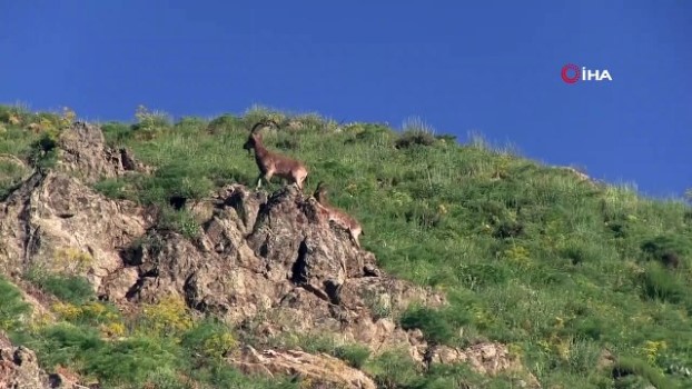- Şırnak’ta havaların ısınmasıyla beraber dağ keçileri dere kenarlarına indi. Şırnak’ın Beytüşşebap ilçesine bağlı Yeşilöz köyü Faraşin Yaylasında bulunan yaban dağ keçileri dere kenarlarına indi. Bölgede ilk defa yaban keçilerini bu kadar yakından gördüğünü belirten vatandaşlar, "İlçemizin yüksek rakımlı dağlarında bulunan dağ keçilerini çoğu kez görüyorum. Yolda giderken keçilerin dereye indiğini gördüm. Yanımdaki arkadaşımla beraber görüntüsünü çektik. Bizi fark eden hayvanlar hemen kaçtı. Derede ıslandık ama değdi" dedi.