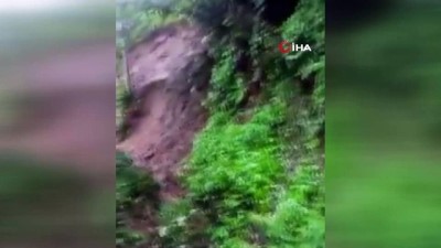 Trabzon'un Of ilçesinde yaşanan heyelan vatandaşlar tarafından böyle görüntülendi