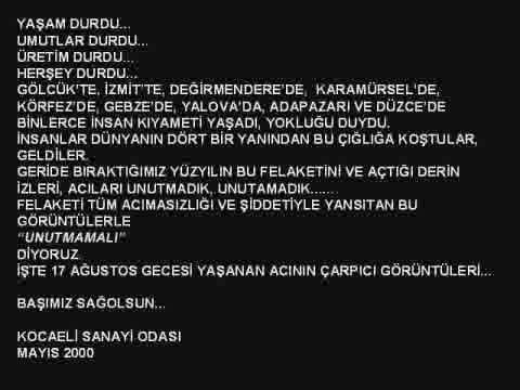 Depremin insanoğlu üzerindeki etkisi 17 Ağustos 1999 yılında gerçekleşen Marmara Depremi' nden görüntüler.