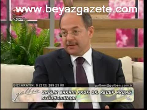 TRT 1 ekranlarından yansıyan Gülben Ergen' in hazırlayıp sunduğu Gülben adlı programın konuk koltuğuna Sağlık Bakanı Recep Akdağ oturdu. Akdağ, ''Diyet programları yerine, ' yediğinizin yarısını yiyin diyeti ' ni uygulamayı önererek, hamur işleri ve fast foodlardan korunmak gerektiğini söyledi.