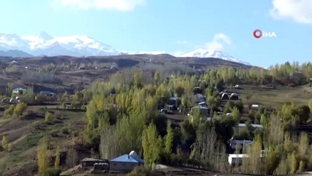 - Hakkari’nin Yüksekova ilçesinde yaşanan sonbahar mevsimi, kenti saran dağların beyaza bürünmesiyle görsel şölen sundu. İlçede 2 hafta önce başlayan soğuk havalar ve ardında devam eden yağışlar ilçeyi olumsuz yönde etkiledi. İlçenin etrafını saran dağlar beyaza bürünürken, kent merkezinde de sonbahar güzelliği yaşanıyor. Ovasının sararmış görüntüsüyle çevresindeki dağların kar görüntüsü görsel şölen oluşturuyor. Bugün yüzünü gösteren güneşi fırsat bilen çiftçiler, hayvanlarını merada otlatırken, fotoğrafçılar da bol bol manzara fotoğrafı çekti. Sonbahar manzarasını fotoğraflayan Rıdvan Basmacı, “Sabah saatlerinde Doski ve Pinyanişi mıntıkasına geldim. Burada karlı dağlarla bütünleşen ovada sonbahar fotoğrafları çektim. Burada gerçekten güzel görüntüler var. Yüksek rakımlı dağlar bembeyaz, etekleri de sapsarı. İki rengi aynı anda yaşıyoruz. Bu da bize çok güzel görüntüler veriyor. Bende bunları bir arada fotoğrafladım" dedi.