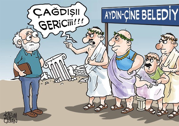 Cüppe ve sarığa çağ dışı diyen ve her fırsatta İslam'a saldıran sekücan CHP'lilerin Aydın Çine belediye meclis üyeleri 5 bin yıllık Yunan kıyafetleri ile toplantı yapmış. Eski Yunan'daki gibi beyaz kumaşlar sarınıp, başlarına defne yapraklı taçlar takmışlar, ellerinde de lir çalgısı ile toplantı yapmışlar.