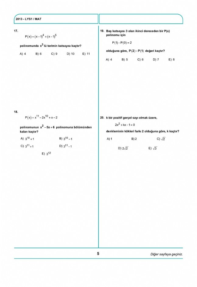 EGİTİM / LYS 2013 MATEMATİK SORULARI VE CEVAPLARI
