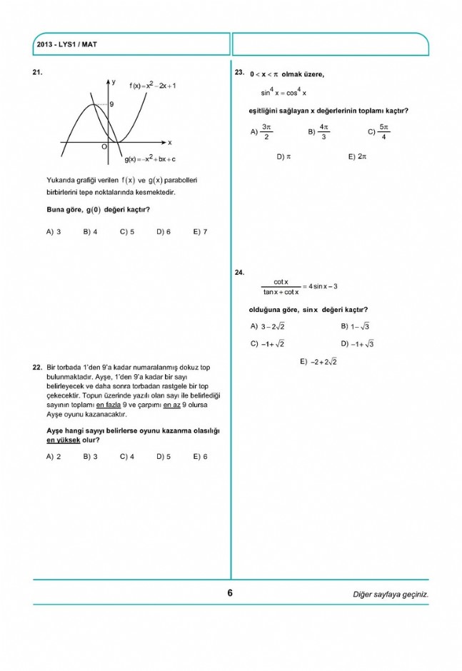 EGİTİM / LYS 2013 MATEMATİK SORULARI VE CEVAPLARI