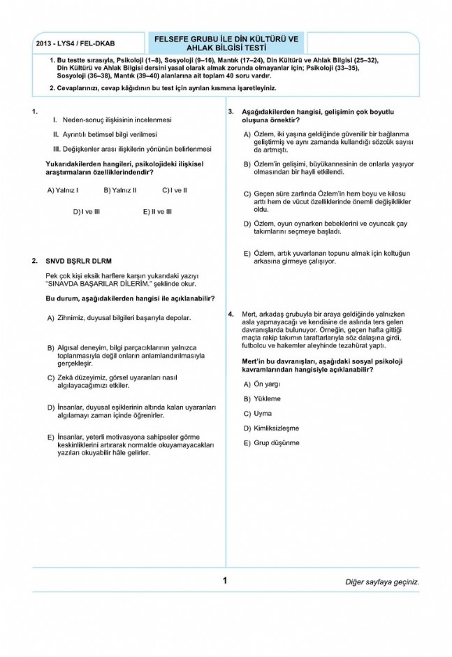 EGİTİM / LYS 2013 SOSYAL BİLİMLER SORULARI VE CEVAPLARI