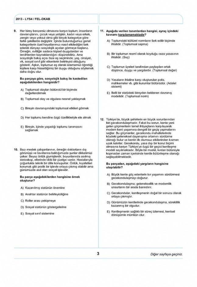 LYS 2013 Sosyal Bilimler Soruları ve Cevapları...