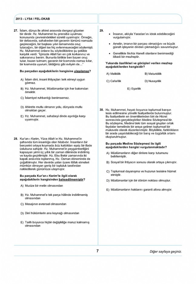 EGİTİM / LYS 2013 SOSYAL BİLİMLER SORULARI VE CEVAPLARI