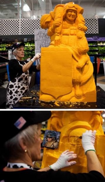 Sarah Kaufmann büyük peynir kalıplarından heykeller yapıyor. Kazancını ise kendine saklamayı tercih ediyor.