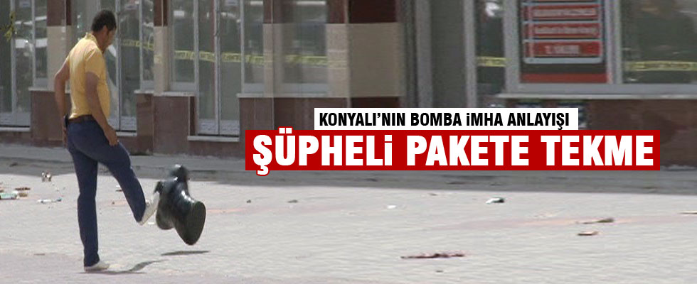 Şüpheli pakete önce taş attı sonra tekmeledi