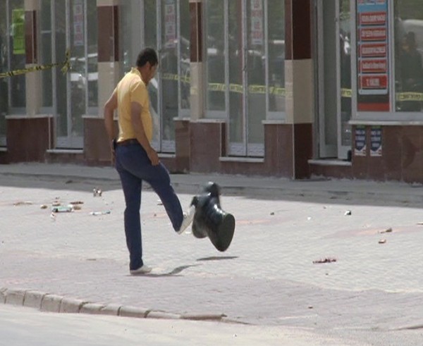 Polislerin tüm uyarılarına rağmen paketi inceleyen Bahri K, daha sonra uzaklaşarak eline bir taş aldı. Geri dönen Bahri K, elindeki taşı mankene fırlattı. Mankenin devrilmesiyle daha da cesaretlenen Bahri K, yerdeki mankeni tekmeledikten sonra havaya kaldırıp salladı. Bu sırada olayı şaşkın bakışlarla izleyen vatandaşlar da mankeni tekmeleyen Bahri K'yi alkışladı. Boş olduğunu söylediği mankeni alarak polise götüren Bahri K, öncesinde röportaj verdiği gazetecinin, 'Mankenin içinde bomba olabilirdi' sorusu üzerine, “Olabilir, vademiz geldiyse gideriz” diye yanıt verdi. Mankeni polise teslim eden Bahri K., ifadesi alınmak üzere polis merkezine götürüldü.