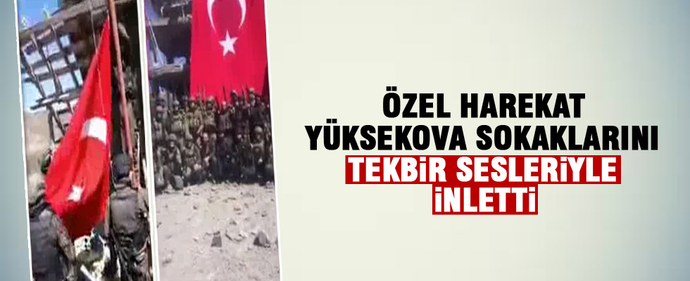 Yüksekova'da PKK'nın karargah olarak kullandığı binaya asılan Türk bayrağı önünde komutanlarının okuduğu marşı dinleyen Özel Harekatçılar, tekbir sesleriyle adeta inletti. Uzun süre havaya ateş açıldı.