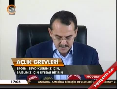 ''Terör örgütü PKK'nın elebaşı Öcalan'ın avukatlarıyla görüştürülürse onun yapacağı bir çağrıyla açlık grevlerinin sonlandırılacağı belirtiliyor. Bakanlığın bir Öcalan'ın avukatlarıyla görüştürülmesi konusunda bir adım atması söz konusu olabilir mi-'' sorusu üzerine Ergin, imkan dahilinde olan adımların Bakanlıkça atıldığını söyledi.
