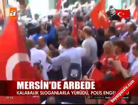 Resmi kutlamaların yapıldığı Cumhuriyet Meydanı’na girmek isteyen CHP’liler, polis barikatını yararak yürümek istedi. CHP’lilerin önüne ikinci kez barikat kuran çevik kuvvet ekipleri, kutlamalar bitene kadar grubun meydana girmesini engelledi. İçel’de Cumhuriyet Bayramı’nın resmi kutlamaları sabah saat 09.00’da İçel Valisi Hasan Basri Güzeloğlu’nun Kültür Merkezi Şeref Salonu’nda tebrikleri kabulü ile başladı.