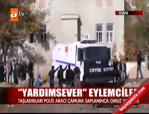 Barış ve Demokrasi Partisi’nin (BDP) düzenlediği miting öncesinde zıhlı aracı taşlayan çocuklar, bir süre sonra çukura düşen zırhlı aracın çıkmasına yardım etti.