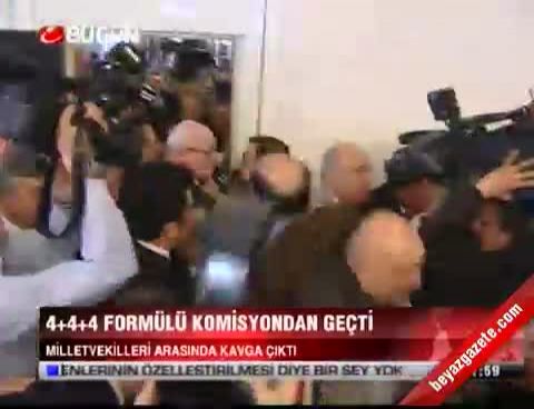 CHP milletvekillerinin salona girmemesi nedeniyle tartışma büyüdü. Bu arada, AK Parti milletvekilleri ve Komisyon Başkanı Nabi Avcı, kameramanların dışarıya çıkmasını istedi. Toplantı salonun girişinde bekleyen CHP'li milletvekilleri çıkmalarını engelleyince, bazı AK Parti milletvekilleri kameramanları iterek salondan çıktı. Yumruklaşma sırasında, CHP Sinop Milletvekili Engin Altay, dengesini kaybederek yere düştü. Altay'ın yerde, AK Parti milletvekilleri tarafından tekmelendiği iddia edildi. Bazı AK Parti milletvekillerinin kavga sırasında, ''12 saat kitap okursanız böyle olur'' dediği duyuldu.