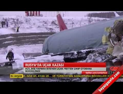 Rusya'da küçük bir yolcu uçağı havalimanına inişi sonrasında pisten çıkarak otoyola girdi. Otoyolda parçalanarak ateş alan uçaktaki 12 kişiden 2'si öldü.