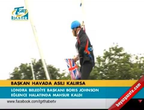 Londra Belediye Başkanı Boris Johnson, Victoria Park'ta düzenlenen Olimpiyat kutlamaları sırasında, lunaparkta bindiği 'eğlence halatı'nda mahsur kaldı.